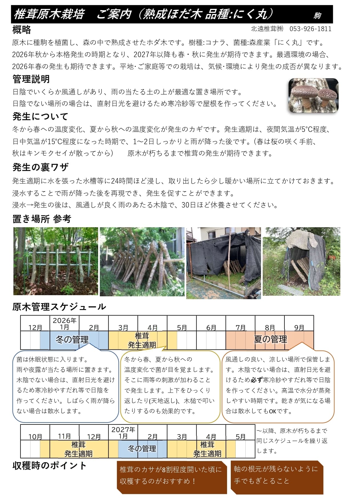 通常、2026年 秋~シイタケ発生となります。
